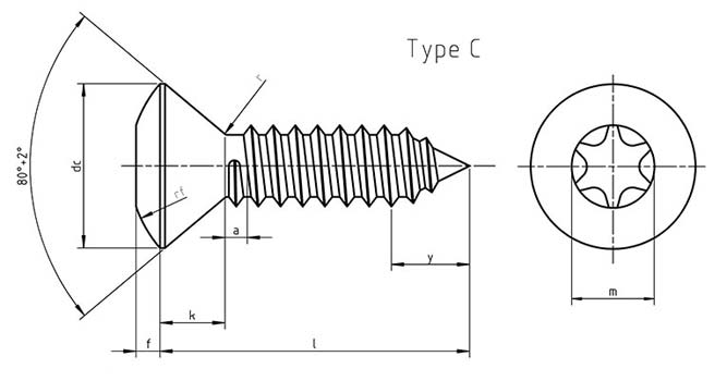 Dimensions for DIN 7983 TX